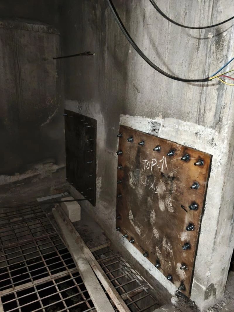 Increment in shear capacity for a punctured RCC load bearing wall with the help of designed steel jacketing. Pic : High end residential Project at Nagpur